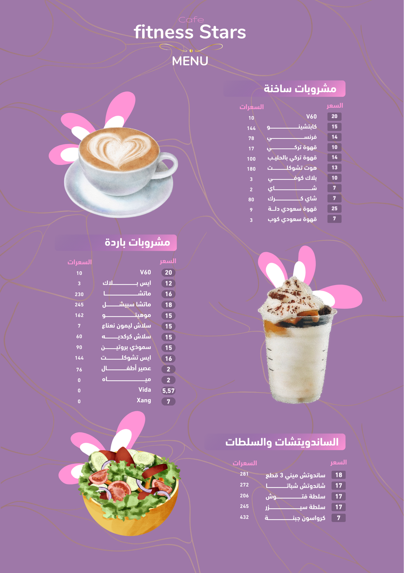 منيو كافيه نجمات اللياقة الشوقية